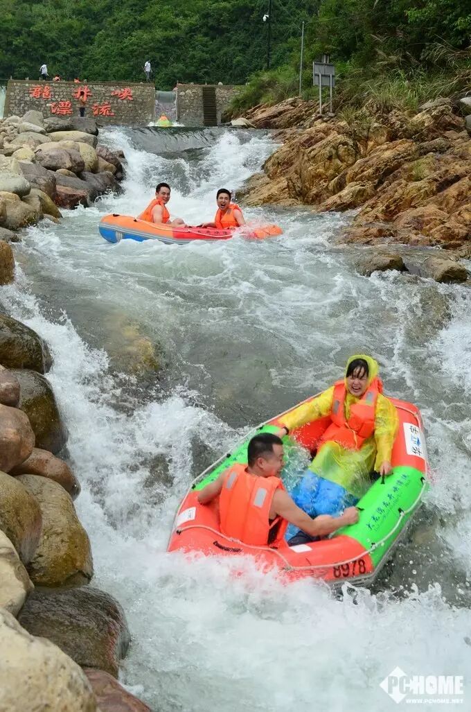 从开闸的第一个峡口,那下落的坡度就能让人惊呼,落水一瞬间,衣物顿时湿了大半!紧接着就是激流汹涌,推着你的橡皮艇不断跌跌撞撞的急速前进!