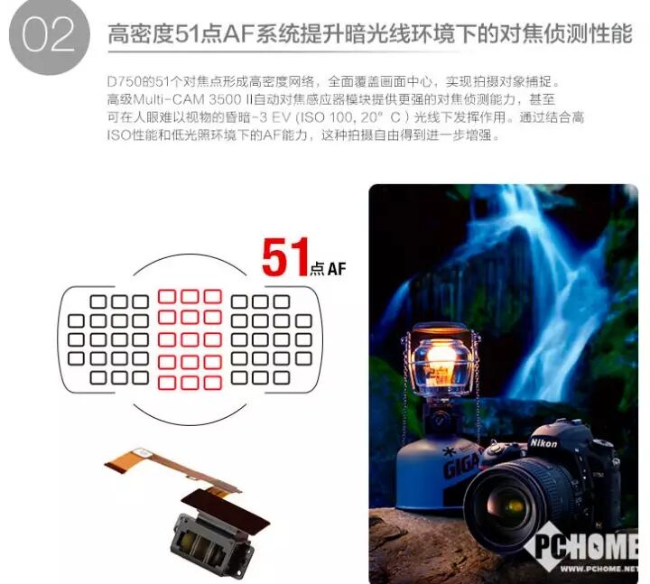 D750的51个对焦点形成高密度网络,全面覆盖画面中心,实现卓越的拍摄对象捕捉。15个十字型感应器经精心排列,可在垂直和水平方向快速进行相位侦测。所有对焦点均能在f/5.6光圈下进行响应。Multi-CAM