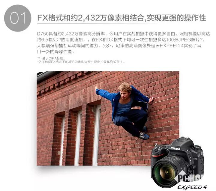 D750在约2,432万有效像素和FX格式间达到了合理均衡,同时实现了锐利细节和良好图像品质。新开发的图像传感器具有宽阔的像素间距和宽广的动态范围,赋予您丰富、平滑的色调过渡以及噪点更少的杰出高感光度性能。EXPEED